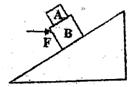如右图所示,在固定的斜面上叠放A、B两物体,若在B物体上加一水平向右的推力F.两物体均静止,则B物体受力的个数为