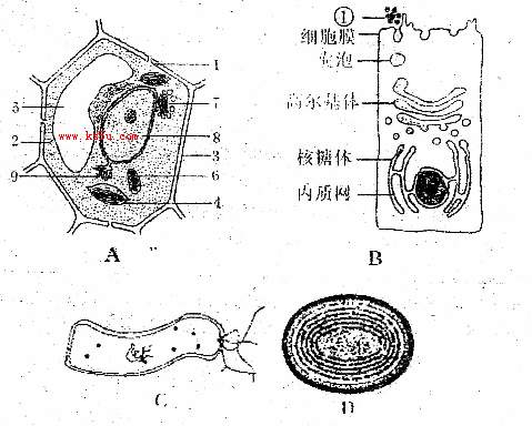 下图的A、B、C、D是4种不同类型的细胞某些结构图,请据图回答下列问题: