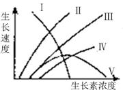 23.右图中曲线Ⅲ表示茎伸长与植物生长素浓度的关系。
