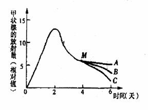 (3)每隔一定时间分别测定三只兔子甲状腺的放射量,并作记录,结果如上图所示: