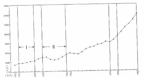 中国1952~1983年国民生产总值曲线图(根据国家统计局网站教据绘制)