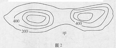 图2为某地等高线地形图,该地著名旅游景点“双龙戏珠”,最佳观赏时段为9月20日至24日,最佳观赏位置在甲处。在此期间太阳下山时,可见其徐徐从鞍部落下,形成“双龙戏珠”的地理景观。据此完成3、4题。
