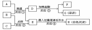 29.(6分)下图是一定条件下相关物质的转化关系,其中A是只含两种元素的纯净物,B、C、E、F均是初中常见的无色、无味的单一气体。