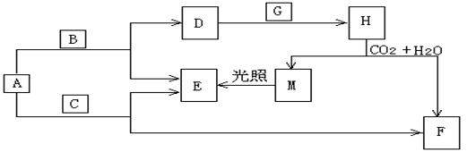 22、(8分)现有A、B、C、D、E、F、G、H、M九种物质,其中A、B、C均为氧化物,且A为淡黄色粉末,常温下B为无色液体。组成E单质的原子的最外层的电子数是次外层的电子数的3倍,G为黄绿色气体单质,F的水溶液与石灰水混合可制得D的溶液。它们之间相互转化的关系如下图,其他与题无关的生成物均已略去。请回答下列问题: