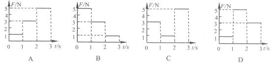 5.将质量为m=lkg的物体静止放在水平面上,物体与水平面之间的动摩擦因数为μ=0.2.现对 物体施加一个方向不变的水平力F,其大小变化如下图所示,在3秒之内物体位移最大的力 图是