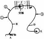 (1)电激(即用电刺激)E,结果A发生运动反应;电激B,结果A反应而E无反应。用有关字母和箭头写出神经冲动在整个反射弧的传导方向。