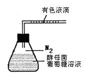 如图是某同学为了研究酵母菌的无氧呼吸所制作的一个实验装置。开始时锥形瓶中装有质量分数为2%的葡萄糖溶液,并在其中加入适量的酵母菌。实验过程中,刻度玻璃管中的有色液滴会向右移动。表中是该同学在不同的温度条件下进行实验时所记录的液滴右移的距离(单位:cm)。请判断下列有关叙述错误的是