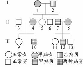 ⑵已知Ⅱ3不是乙病基因的携带者,第Ⅰ代将乙病基因传递给Ⅲ10个体的途径是(用数字和“→”表示) ▲ ,这种传递特点在遗传学上称为 ▲ ;