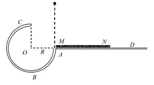 圆弧形光滑细圆管轨道ABC,放置在竖直平面内,轨道半径为R,在A点与水平地面AD相接,地面与圆心O等高,MN是放在水平地面上长为3R、厚度不计的垫子,左端M正好位于A点,将一个质量为m、直径略小于圆管直径的小球从A处管口正上方某处由静止释放,不考虑空气阻力.