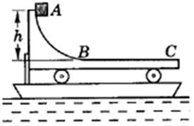 如21题图所示,带弧形轨道的小车放在上表面光滑、静止浮于水面的船上,车左端被固定在船上的物体挡住,小车的弧形轨道和水平部分在B点相切,且AB段光滑,BC段粗糙.现有一个离车的BC面高为h的木块由A点自静止滑下,最终停在车面上BC段的某处.已知木块、车、船的质量分别为m1=m,m2=2m,m3=3m;木块与车表面间的动摩擦因数μ=0.4,水对船的阻力不计,求木块在BC面上滑行的距离s是多少?(设船足够长)