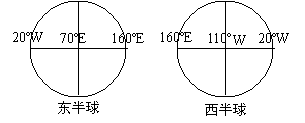 东、西,两个半球划分:20°W和160°E组成的经线圈,将地球分为东、西两个半球。(如图)