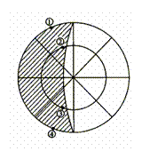 2004年3月22日到4月3日期间,可以看到多年一遇的“五星连珠“天象奇观。其中水星是最难一见的行星,观察者每天只有在日落之后的1小时内可能看到它。在图中阴影部分表示黑夜,中心点为极地。回答9-11题。