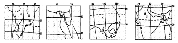 下图中,a、b、c、d分别表示四个国家。读图完成下列要求:
