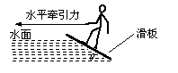 (14分)滑板运动是一项非常刺激的水上运动。研究表明,在进行滑板运动时,水对滑板的作用力Fx垂直于板面,大小为kv2,其中v为滑板速率(水可视为静止)。某次运动中,在水平牵引力作用下,当滑板和水面的夹角为θ=37º时(如图),滑板做匀速直线运动,相应的k=54kg/m,人和滑板的总质量为108kg。(取重力加速度g=10m/s2,sin37º=0.60,cos37º=0.8忽略摩擦阻力和空气阻力)试求: