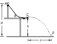 0.75 m,C距离水平地面高h = 0.45 m。一质量m = 0.10kg的小物块自A点从静止开始下滑,从C点以水平速度飞出后落在水平地面上的D点