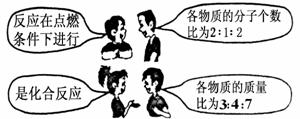20.右下图是四位同学正在讨论某一个化学方程式表示的意义。根据他们描述的内容,判断他们所指的化学方程式是