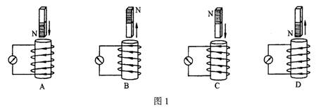 3.图1是验证楞次定律实验的示意图,竖直放置的线圈固定不动,将磁铁从线圈上方插入或拔出,线圈和电流表构成的闭合回路中就会产生感应电流。各图中分别标出了磁铁的极性、磁铁相对线圈的运动方向以及线圈中产生的感应电流的方向等情况,其中表示正确的是 ( )