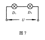9.如图7所示,两只相同的白炽灯泡D1和D2串联后接在电