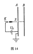 个被加热的灯丝K与S位于同一水平线,从灯丝上可以不断地发射出