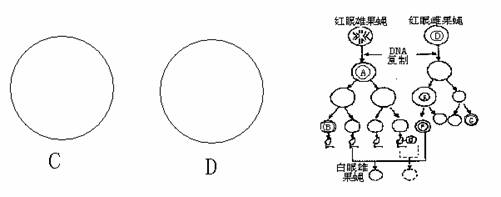 (2)请在下面圆圈中画出C、D细胞的染色体组成。