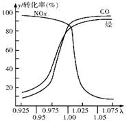 (2) 在发动机和三元催化转化器间的尾气流中安装一个称为λ探测器的电化学元件,可测定λ(λ=入口处的空气量/完全燃烧需要的空气量)值,如右图所示。当汽车速度增加时,入口处的空气量增大,此时排出尾气中的主要污染物是 。在转化器的前半部,一氧化碳和氮氧化物(NOx)通过催化剂发生反应转化为无污染的气体,其反应的化学方程式为 。