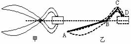 模型,其中一个如图乙中实线所示,今在A点施加一个大小不变、方向始终垂直于AB的握力F,则在下列情况发生时,其中判断正确的是