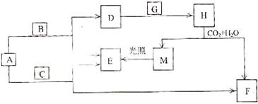 29.(8分)现有A、B、C、D、E、F、G、H、M九种物质,其中A、B、C均为氧化物,且A为淡黄色粉末,G、E为气体单质且G为黄绿色,F的水溶液与石灰水混合可制得D的溶液。它们之间相互转化的关系如下图,其他与题无关的生成物均已略去。请同答下列问题: