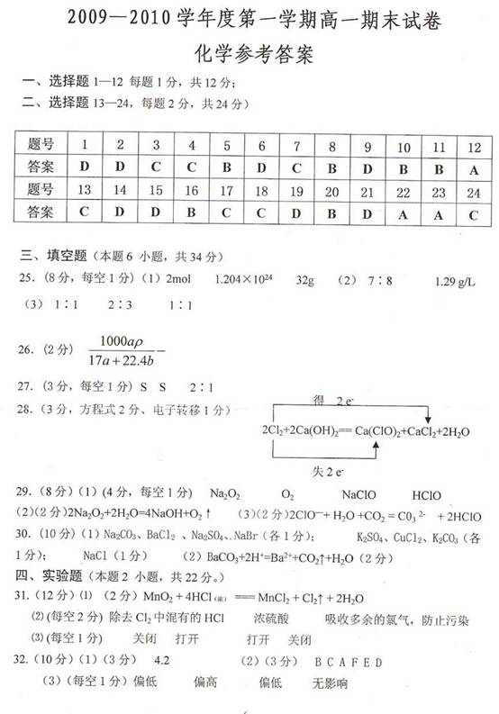 31.(12分)某校化学兴趣小组用浓盐酸与二氧化锰加热反应,制取并收集2瓶干燥、纯净的氯气,为防止换集气瓶时生成的氯气污染空气,设计了如下装置: