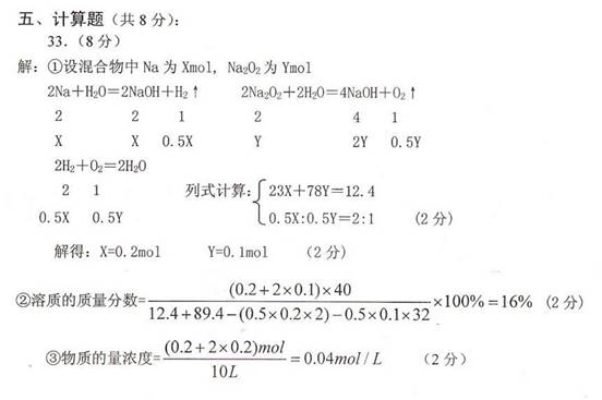 33.将12.4gNa和Na2O2固体混合物加入89.4g水中,充分反应后,把生成的所有气体收集在另外一个密闭容器中,用电火花点燃,恰好完全反应,求: