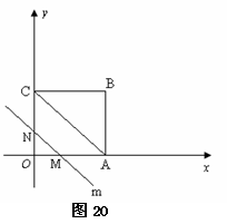 2.(08甘肃白银等9市)28.(12分)如图20,在平面直角坐标系中,四边形OABC是矩形,点B的坐标为(4,3).平行于对角线AC的直线m从原点O出发,沿x轴正方向以每秒1个单位长度的速度运动,设直线m与矩形OABC的两边分别交于点M、N,直线m运动的时间为t(秒).