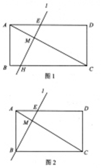 已知:矩形ABCD中,AB=1,点M在对角线AC上,直线l过点M且与AC垂直,与AD相交于点E。