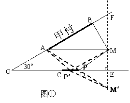方案三:供水站建在甲村(线段AB某处),请你在图②中,画出铺设到乙村某处和点M处的管道长度之和最小的线路图,并求其最小值。