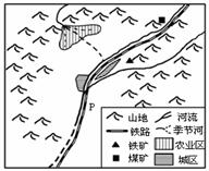 右图为我国西北某地简图,P地为钢铁厂,完成29-30题。