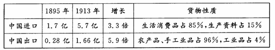 10.下表反映出近代中国对外经济发展呈现的特征是