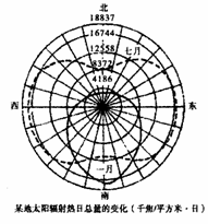某校地理小组,根据当地各朝向楼房外墙面接受太阳辐射热量的实测值,计算出一月和七月的太阳辐射日总量,并绘出图,结合图示信息判断9-10题。