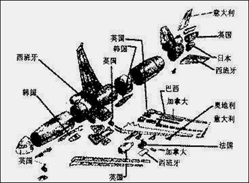 32.(16分)材料一:麦道公司在美国以外的零件供应地示意图: