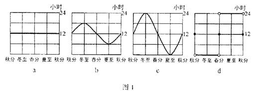 读“不同地点昼长随季节变化统计曲线图”(图1),回答1-3题。