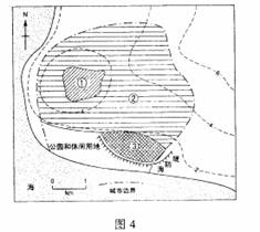 读“欧洲西部某沿海城镇功能分区图”(图4),图中的虚线为等高线(单位:米),海防堤是为应对海平面上升1米而设计的。据此回答7-9题。