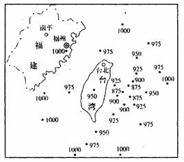 (3)在图15中画出875、900、925、950百帕四条等压线,并判断该图所示天气系统的类型。(3分)