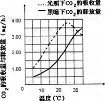 (2)、以测定的C02吸收量与释放量为指标,研究温度对某绿色植物光合作用与呼吸作用的影响,结果如图所示。请据图回答:(4分)