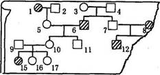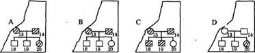 表示正常女性)现找到4张系谱图碎片,其中属于张某家族系谱图碎片的是