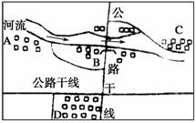 (1)图中A、B、C、D表示乡村聚落,分析A、B、C发展的有利因素是:靠近 ,有利于 ,地形以平原为主,土壤深厚,且土壤肥沃,这样的聚落一般顺河道可伸展成 状。