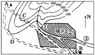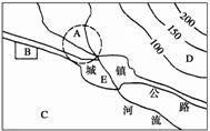 (2)随着经济发展和人口的增长,若该城镇规划一处新住宅区,你认为较合理的地点是 ( )