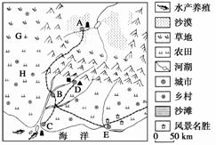 E城市兴起和发展的主要区位因素是 。按目前图中表示的现状,哪个地点可能会再形成一座城市,将这座城市用字母F标注在图中。