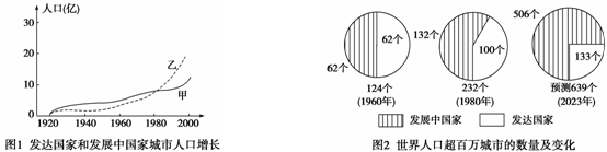 (4)世界人口超百万特大城市的数量变化特点是 。发展中国家与发达国家相比,超过百万人口特大城市的数量变化特点是 。