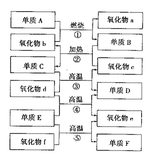 右图是部分化学常见的氧化物和单质的转化关系。其中。气化物f是制造光导纤维的重要原料,氧化物c是一种具有磁性的黑色物质。回答下列问题:
