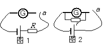 实验所用的电流表是零刻度在中央的电流表,在实验前应先测定电流方向与指针偏转方向的关系:将电流表、电池、电阻、导线按图1或图2 连接,其中R是阻值大的电阻,r是阻值小的电阻,用导线的a端试触电流表另一端,就可判定电流方向和指针偏转方向的关系。