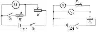 ⑴、用图(a)测定电流表内阻rg,方法是:先断开S2,闭合S1,调节R,使电流表满偏;然后闭合S2,调节R/,使电流表达到半满偏。当R比R/大很多时,可以认为rg=R/。(当R比R/大很多时,调节R/基本上不改变电路的总电阻,可认为总电流不变,因此当电流表半满偏时,通过R/的电流也是满偏电流的一半,两个分路的电阻相等)。实际上,S2闭合后,总电阻略有减小,总电流略有增大,当电流表半满偏时,通过R/的电流比通过电流表的电流稍大,即R/比rg稍小,因此此步测量的系统误差,总是使rg的测量值偏小。其中R不必读数,可以用电位器,R/需要读数,所以必须用电阻箱。