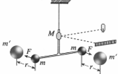 左下图是卡文迪许扭秤实验的示意图。其中固定在T形架上的小平面镜起着非常大的作用。利用光的反射定律可以把T形架的微小转动放大到能够精确测量的程度。设小平面镜到刻度尺的距离为L,T形架两端固定的两个小球中心相距为l,设放置两个大球m/ 后,刻度尺上的反射光点向左移动了Δx,那么在万有引力作用下,小球向大球移动了多少?