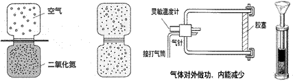 装有无色空气的广口瓶倒扣在装有红棕色二氧化氮气体的广口瓶上,中间用玻璃板隔开。抽去玻璃板,过一段时间可以发现,两种气体混合在一起,上下两瓶气体的颜色变得均匀一致。